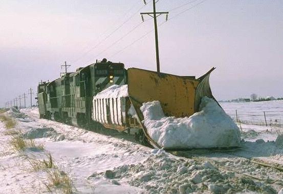 Burlington Northern plow at Mediapolis, Iows, 1982.
